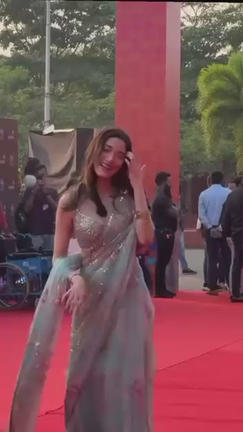 Saree : Premium Georgette Embellished With Beautiful Print , Beautiful Handwork Sequins Work , Beautiful Hand Mirror Work With Beautiful Lace